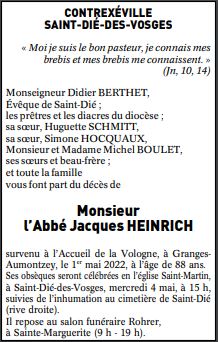 Décédé à Granges sur Vologne (88640, France) le dimanche 1 mai 2022 à l'âge de 88 ans