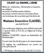 Née à Lubine (88490, France) le mercredi 14 février 1940