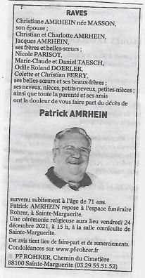 Décédé à Raves (88520, France) le lundi 20 décembre 2021 à l'âge de 71 ans