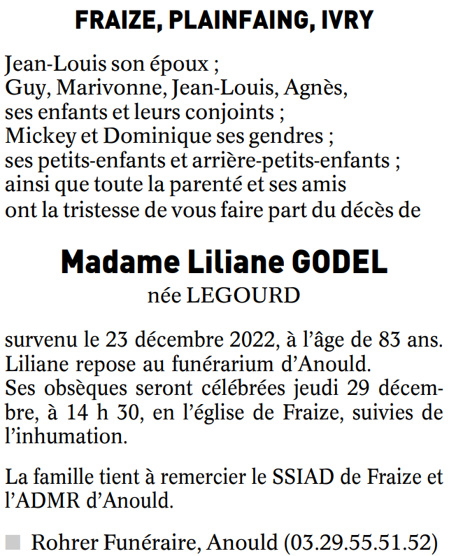 Décédée à Saint Dié (88100, France) le vendredi 23 décembre 2022 à l'âge de 83 ans