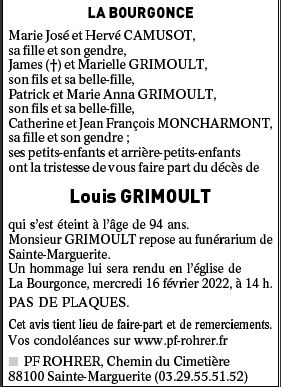 Décédé à Raon-l'Étape (88110, France) le dimanche 13 février 2022 à l'âge de 94 ans